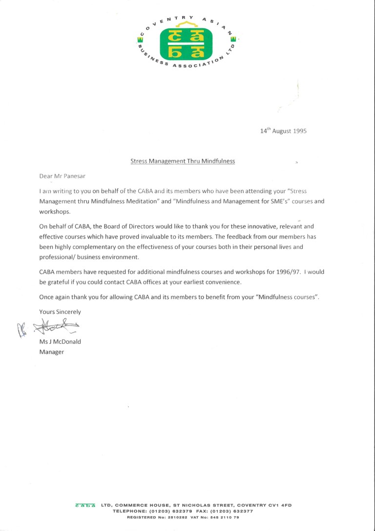 On 26th December 1993, Dav Panesar suffered a heart attack and was admitted to Coventry and Warwickshire Hospital. Being Boxing day, the hospital was inundated with patients – with many waiting to be seen in the waiting rooms and their corridors. While he lay waiting for medical attention to remedy the pain and real possibility of death, he practiced his meditation. His meditation comprised of both mindfulness of breath when possible and mindfulness of internalised sound as mantras. To both his surprise and the surprise of the medical staff, Dav’s physiological signs of blood pressure, heart rate and breathing rate were all influenced during his practice and became erratic and unstable as he withdrew his awareness away from the breath or sound. Dav’s upbringing and teachings in an environment where meditation was a daily part of life across all generations made this an instinctive response to the incredible danger, fear and trauma of a sudden heart attack.
