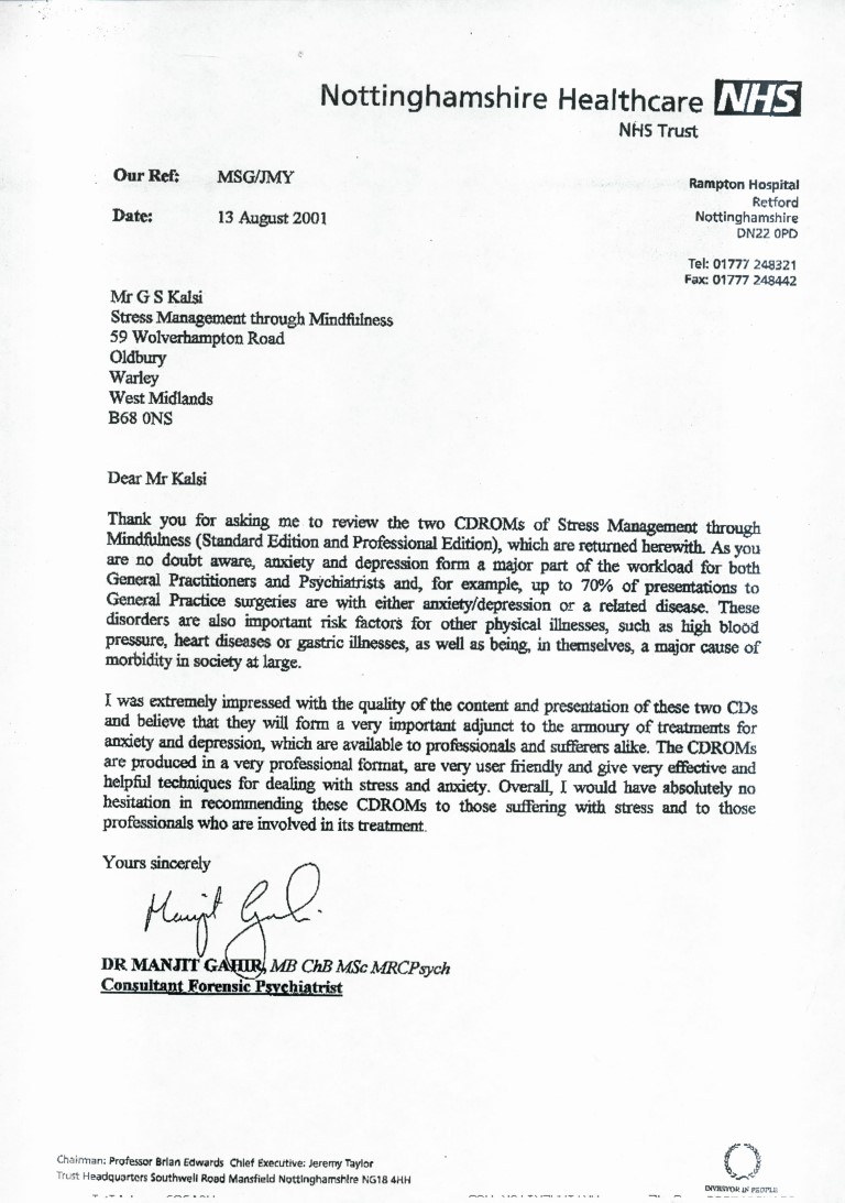 Mindfulness interactive SMM CD based courses were evaluated by Nottinghamshire NHS for use with individuals suffering from anxiety and stress
